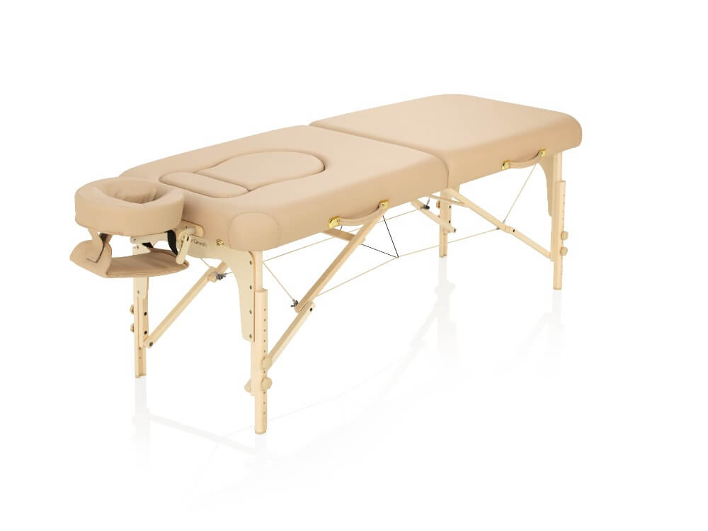 Diese Massageliege ist speziell auf die Bedürfnisse der werdenden Mutter abgestimmt, eignet sich aber auch zur Unterstützung von Frauen mit größerer Oberweite oder fülligeren Personen.