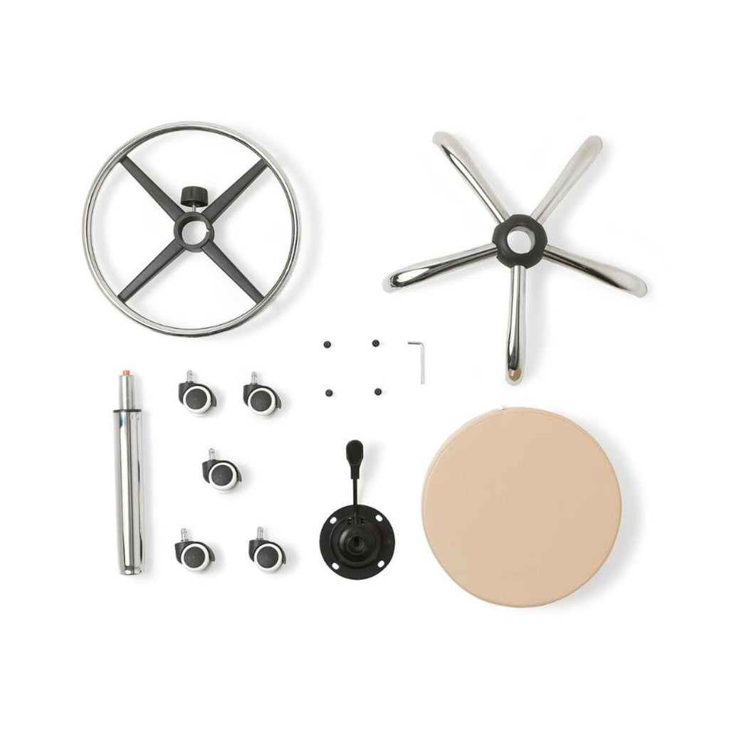 Der Tabouret lässt sich schnell und einfach zusammenbauen. Wir liefern alle benötigten Einzelteile mit. Die Teile können zusammengesteckt werden, und du musst lediglich vier Schrauben mit dem mitgelieferten Inbusschlüssel in den Sitz drehen. Danach ist der Stuhl einsatzbereit!